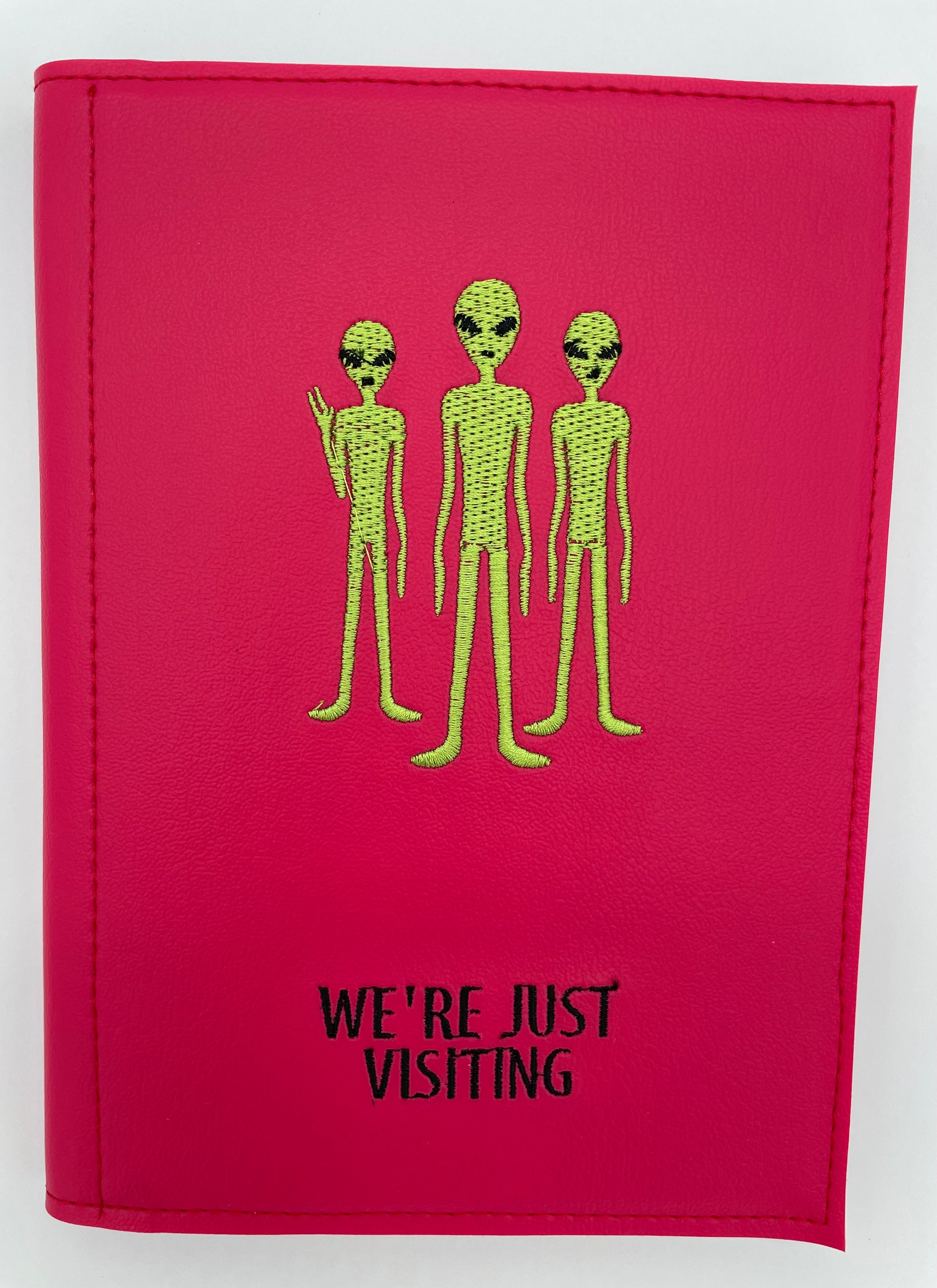 Handmade reusable vinyl notepad cover with notepad and matching pen.