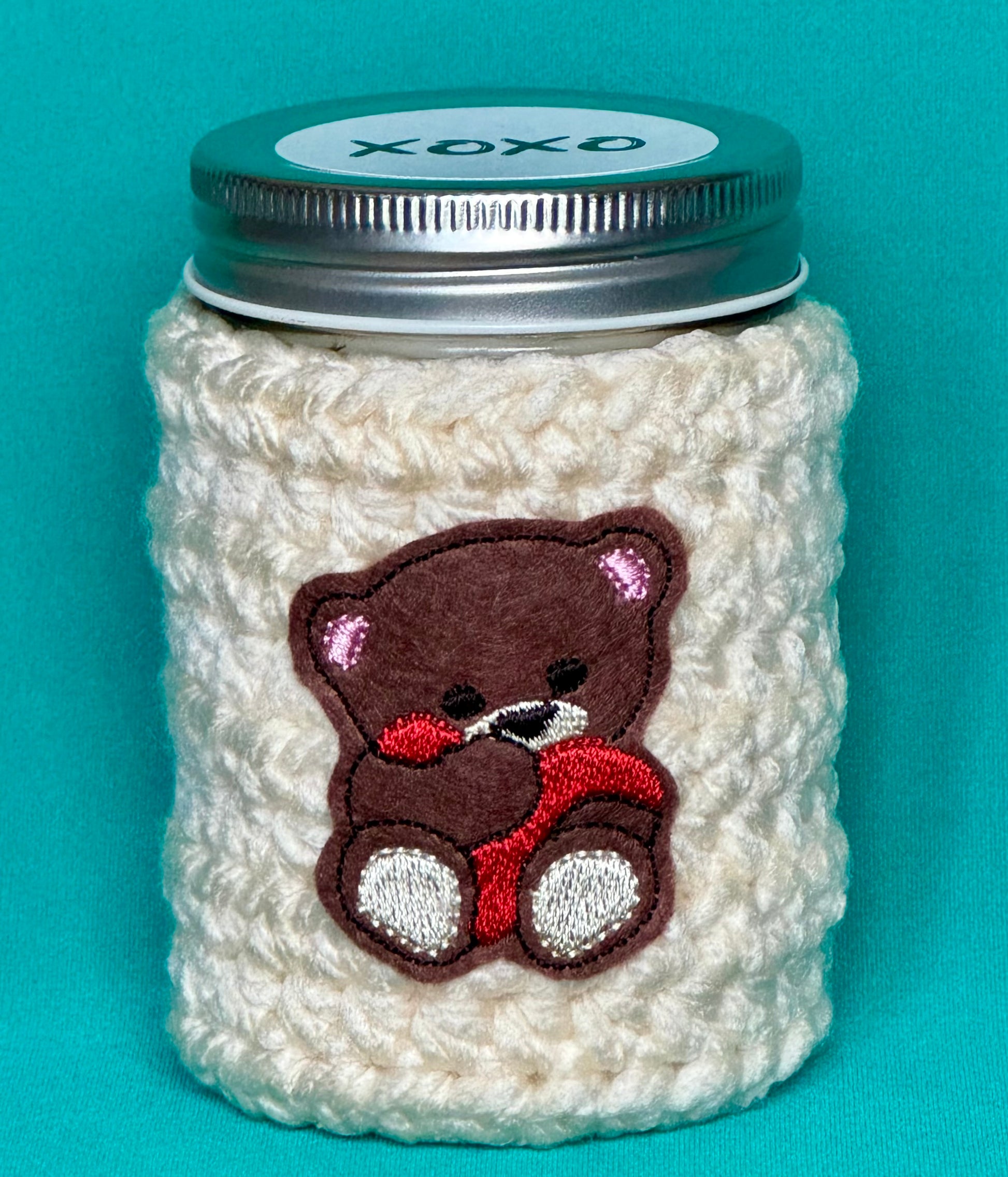 Ignite the warmth of treasured memories with our hand-poured eco-friendly cozy candles wrapped in a beautifully crocheted sleeve with embroidered appliqué.